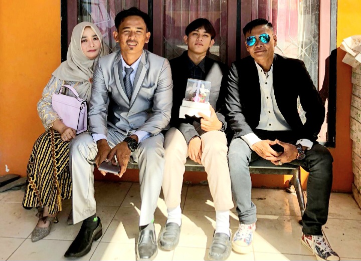 Keterangan foto : berjas warna silver pengantin pria bersama ibu kandung disebelahnya tampak pula adik kandung pengantin laki-laki dan ayah sambungnya