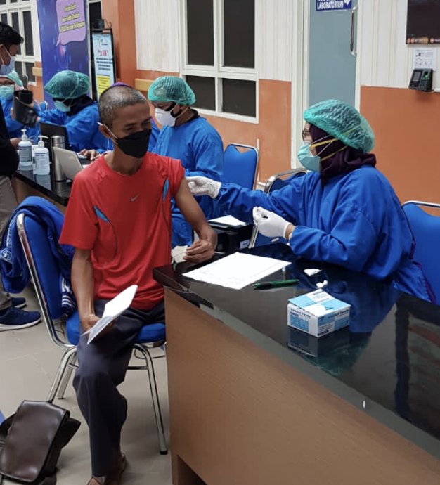 Salah satu pegiat olahraga yang mendapatkan suntikan vaksin tahap pertama.