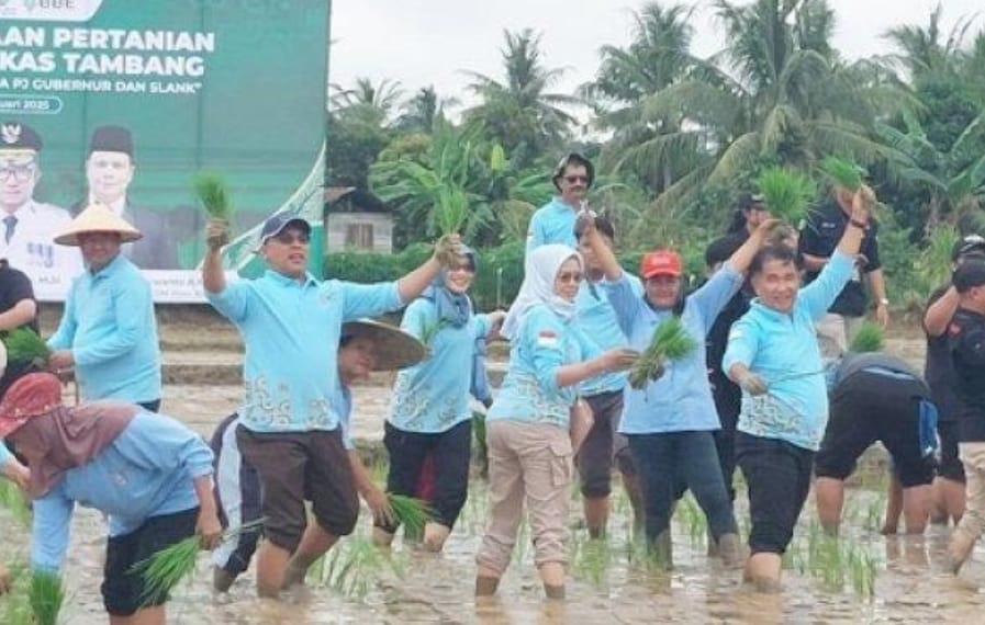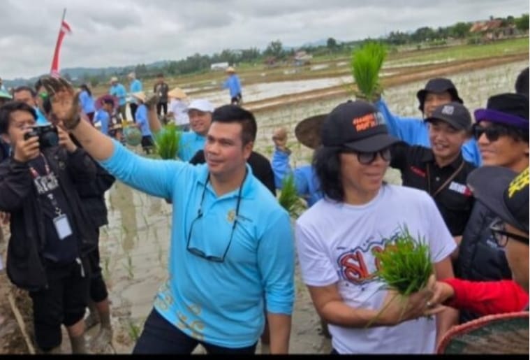 Dia bersama Bimbim dan Ridho rela turun berlumpur-lumpur untuk menanam padi. Kebetulan habis hujan. “Karena ini ide baik dari orang baik (Pj Gubernur Akmal Malik), jadi harus kita dukung,” kata Kaka bersemangat.