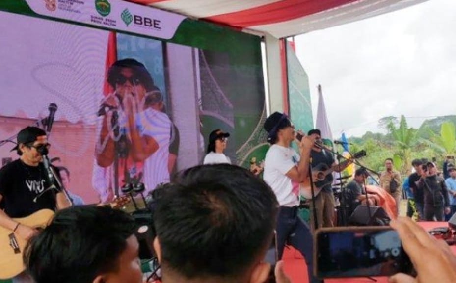 Penampilan Slank di lokasi penanaman padi pada lahan eks tambang.(TribunKaltim)