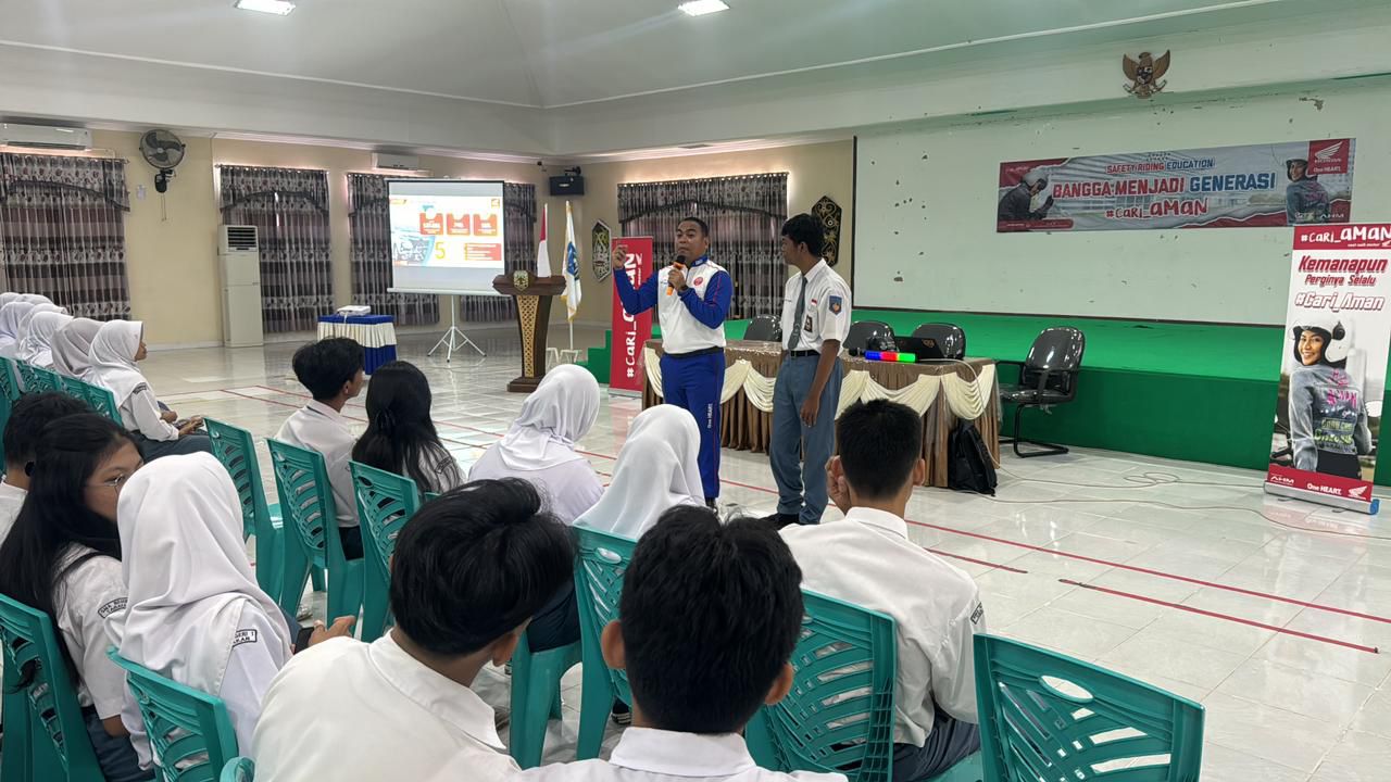Kaltimkita.com, BALIKPAPAN - Pentingnya keselamatan dalam berkendara terus digaungkan oleh Astra Motor Kaltim 1 dengan terjun langsung ke lapangan. Pada kesempatan kali ini, Sosialisasi safety riding dilakukan kepada siswa-siswi guna menularkan virus campaign #cari_AMAN di Aula SMA Negeri 1 Tarakan, Selasa(17/09).
