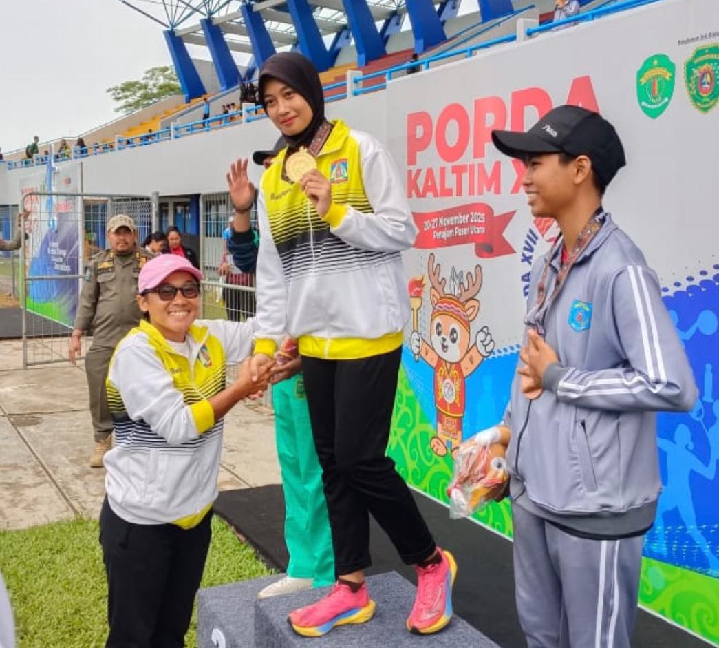 KaltimKita.com, PPU - Cabang olahraga atletik kembali menjadi penyumbang medali emas bagi kontingen Balikpapan pada Pekan Olahraga Pelajar Daerah (Popda) XVII Kalimantan Timur 2025 di Penajam Paser Utara. Emas kedua diraih Felita Delfina Dermawan dari nomor lompat jauh yang digelar di Lintasan Atletik Stadion Panglima Sentik, Selasa (18/11/2025).