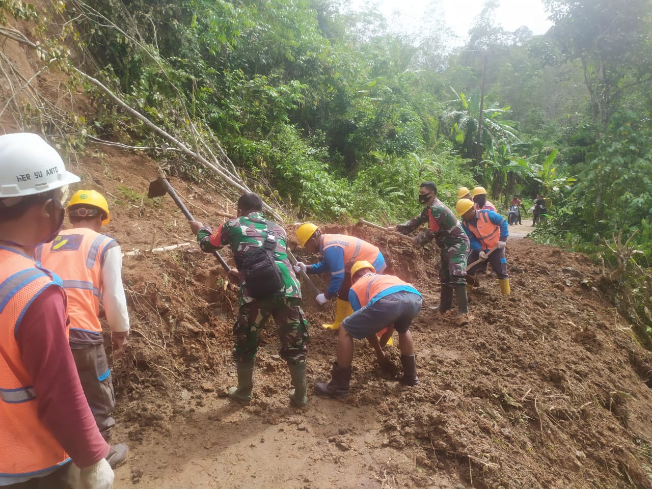 Selain memutus akses jalan, longsor juga memutus jaringan listrik PLN sehingga aliran listrik kedua desa padam. Babinsa Koramil 1002-03/Haruyan Serda Sutoyo dan Babinsa Koramil 1002-07/Pagat Serda Sapto bersama petugas PLN membuka jalan agar dapat dilalui oleh kendaraan roda dua maupun roda empat.