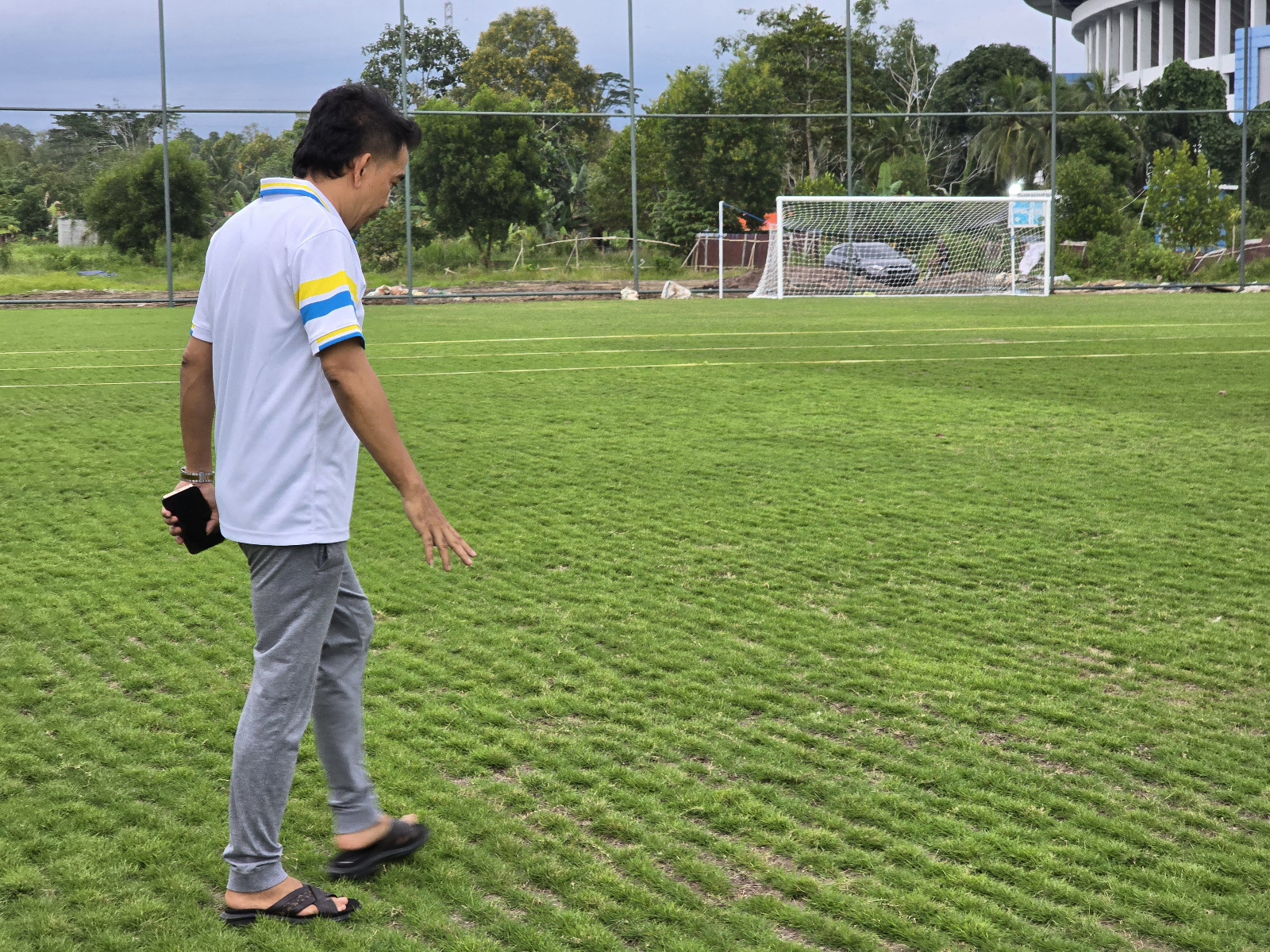 Ketua DPRD Kota Balikpapan, Alwi Al Qadri melakukan peninjauan langsung progres pembangunan lapangan latihan. Hasilnya menurut Alwi progres pembangunan berjalan sesuai harapan baik kondisi rumput dan fisik lapangan.
