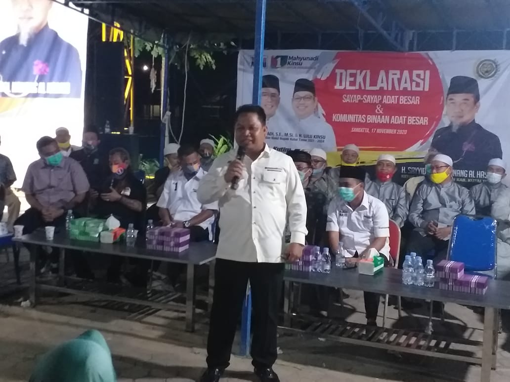 Yang mana orasi kampanye terbuka pasangan nomor urut 1 Mahyunadi oleh kepala adat besar Kutim Abdal Nanang yang dilangsungkan pada penginapannya (hotel red) jalan Yos Sudarso Kecamatan Sangatta Utara Kabupaten Kutai Timur Provinsi Kaltim, diakui oleh cawabup Kutim MaKin, peci nomor 1 Lulu Kinsu.