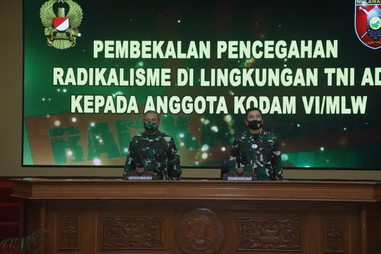 Pangdam VI/Mulawarman Mayjen TNI Heri Wiranto, S.E., M.M., M. Tr (Han) dalam sambutannya mengatakan, “Secara umum tujuan dilakukan kegiatan ini untuk mewujudkan pemahaman tentang bahaya penyebaran paham Radikalisme bagi personel TNI AD sehingga memberikan pengetahuan yang benar guna menangkal penyebaran paham Radikalisme dan Personel Kodam VI/Mulawarman baik Prajurit maupun PNS akan terbebas dari kemungkinan terpapar Radikalisme jika mengikuti kegiatan ini sebaik baiknya”, ujar Pangdam.