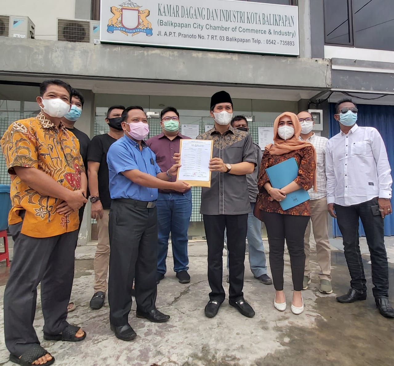 Yaser Arafat menunjukkan kelengkapan pendaftarannya sebagai ketua Kadin Balikpapan