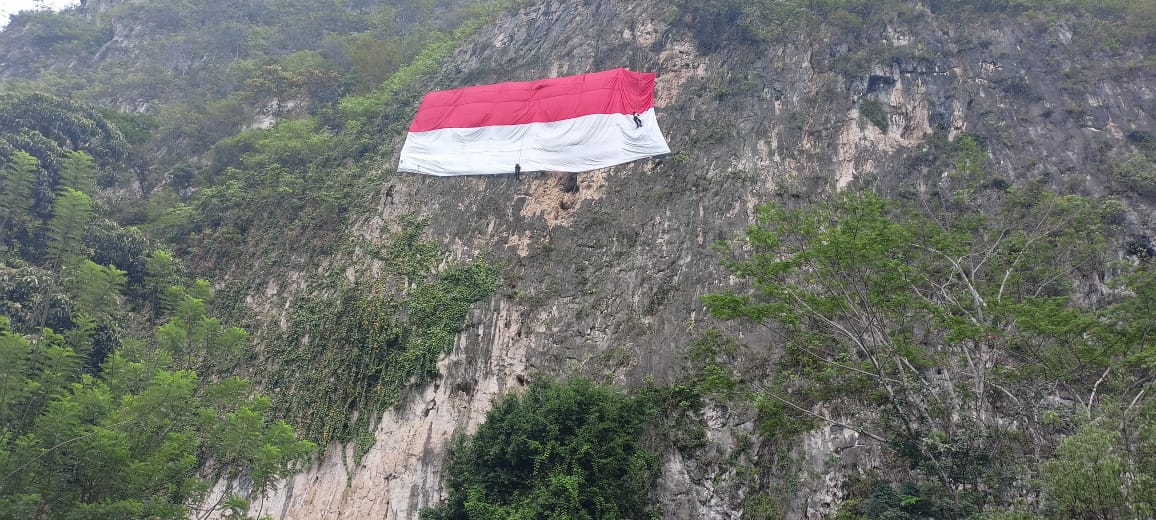 Kaltimkita.com, PASER - Berbagai cara dapat dilakukan dalam menyemarakkan peringatan HUT ke-76 Republik Indonesia. Seperti yang dilakukan kelompok pencinta alam Laskar Rimba Merah Putih bersama Kejaksaan Negeri Paser. Dengan membentangkan bendera merah putih raksasa di Tebing Sesubang, Kecamatan Muara Komam.