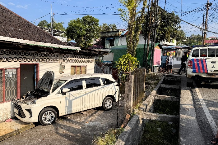 "Saya dengar suara ‘brukkk’ dari belakang. Pas dilihat, mobilnya sudah nabrak pagar sampai ke depan rumah warga," katanya.