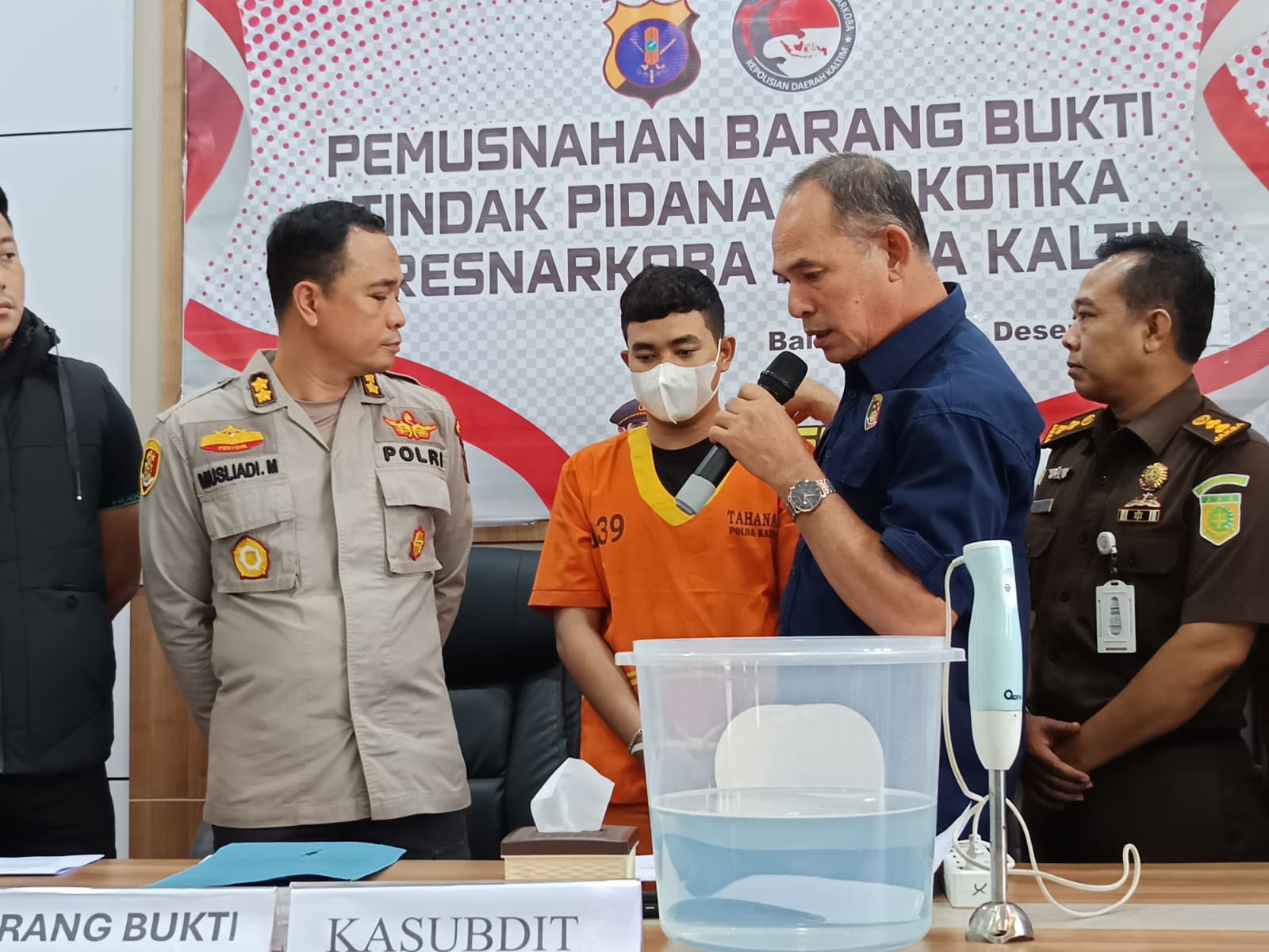 Kaltimkita.com, BALIKPAPAN - Hasil pengungkapan kasus peredaran sabu di Kecamatan Tanjung Redeb, Kabupaten Berau. Direktorat Reserse Narkoba (Dit Resnarkoba) Polda Kaltim memusnahkan sebanyak 400 gram lebih sabu. Dalam pengungkapan kasus ini, polisi menetapkan seorang pria berinisial MI (24) sebagai tersangka.