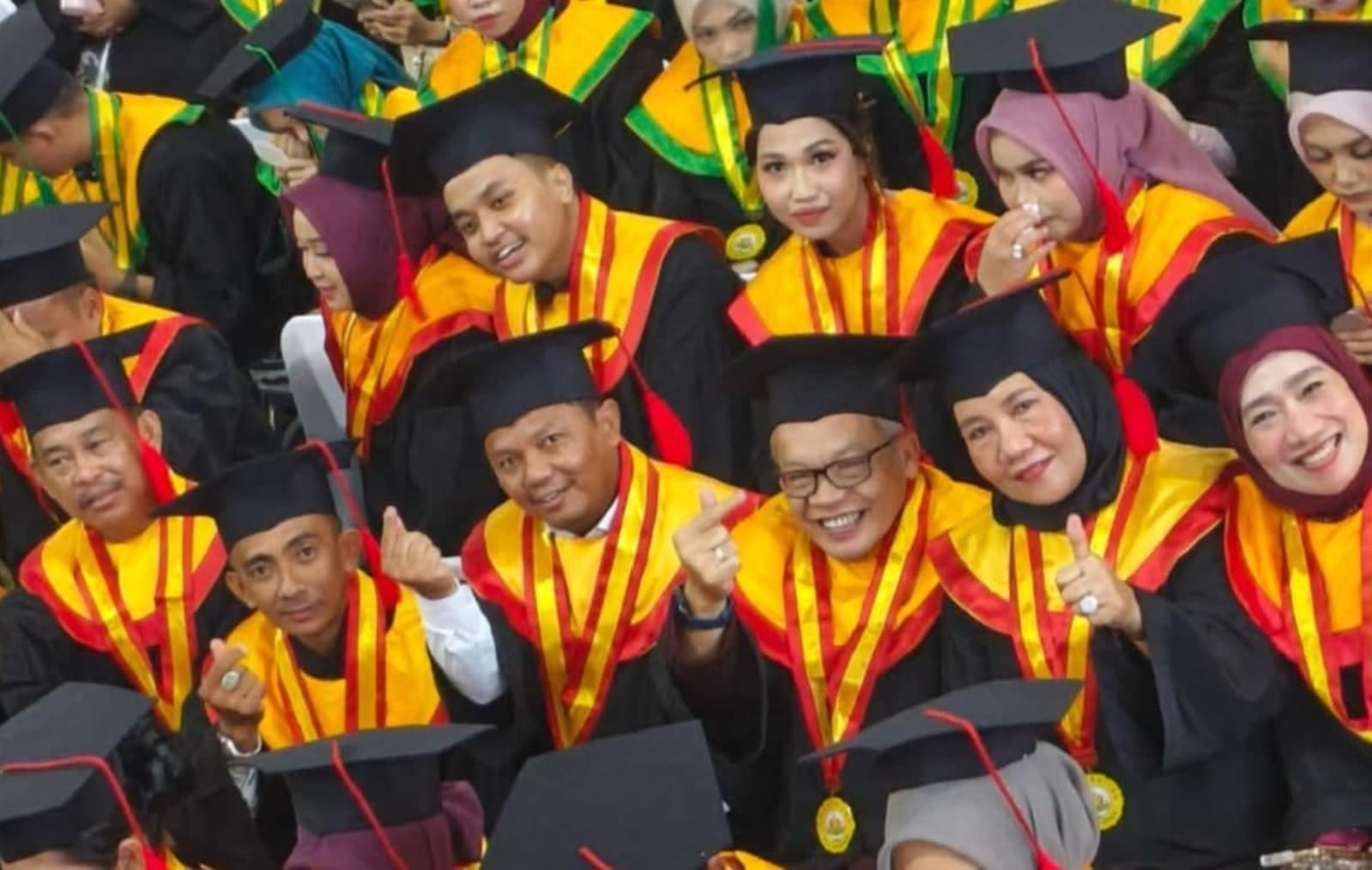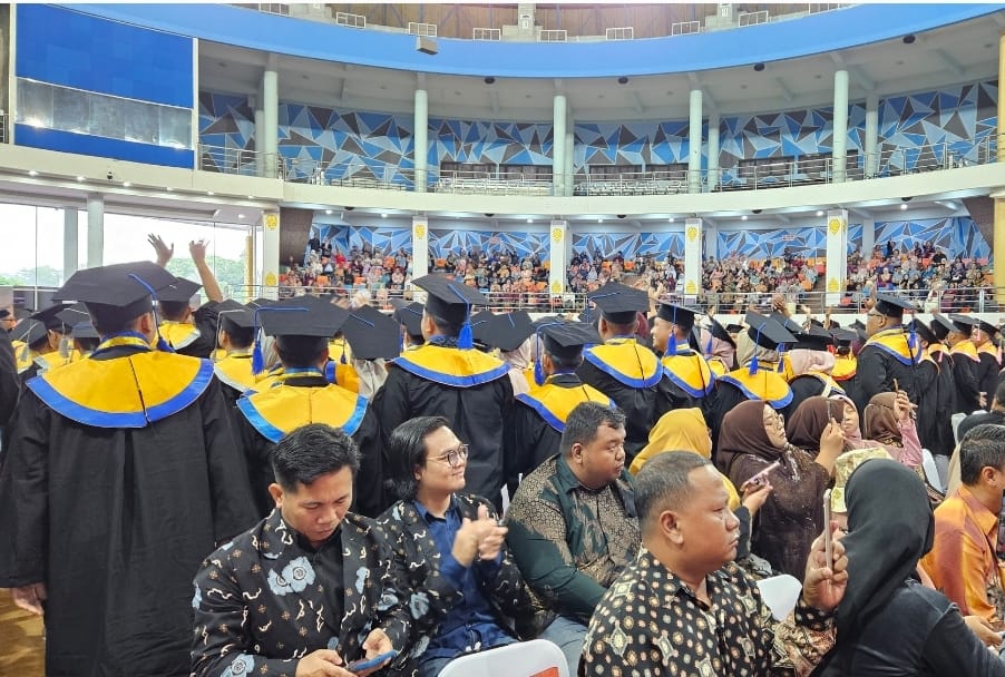 Wisudawan Uniba berbalik ke belakang menyapa orangtuanya atas “perintah” Ketua OIKN.