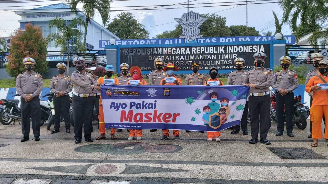 Sebanyak 32.500 masker menurut Direktur Lalu Lintas Polda Kaltim, Kombes Pol. Singgamata, dibagikan ke segenap lapisan masyarakat.