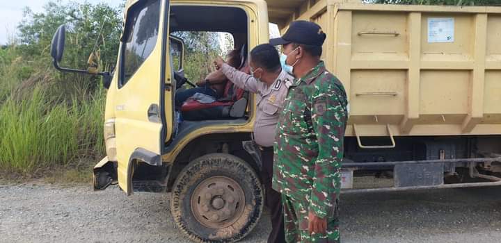 Tampak Babinsa bersama Bhabinkamtibmas saat akan mengevakuasi almarhum Bakri yang meninggal dunia secara syahid.