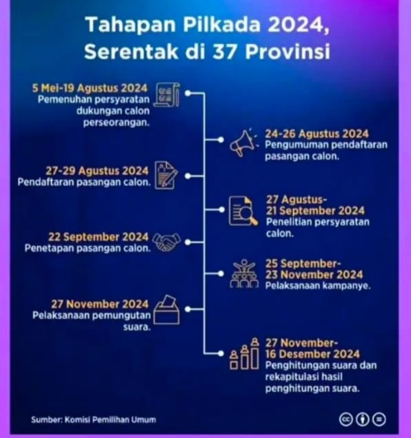 USAI Pilpres dan Pileg 2024, kita sudah ditunggu melaksanakan Pilkada serentak. Pendaftaran dijadwalkan 27 Agustus mendatang dan pencoblosannya 27 November. Hanya tiga bulan prosesnya. Masa kampanyenya juga sangat singkat. Tidak sampai dua bulan, yaitu 25 September sampai 23 November.