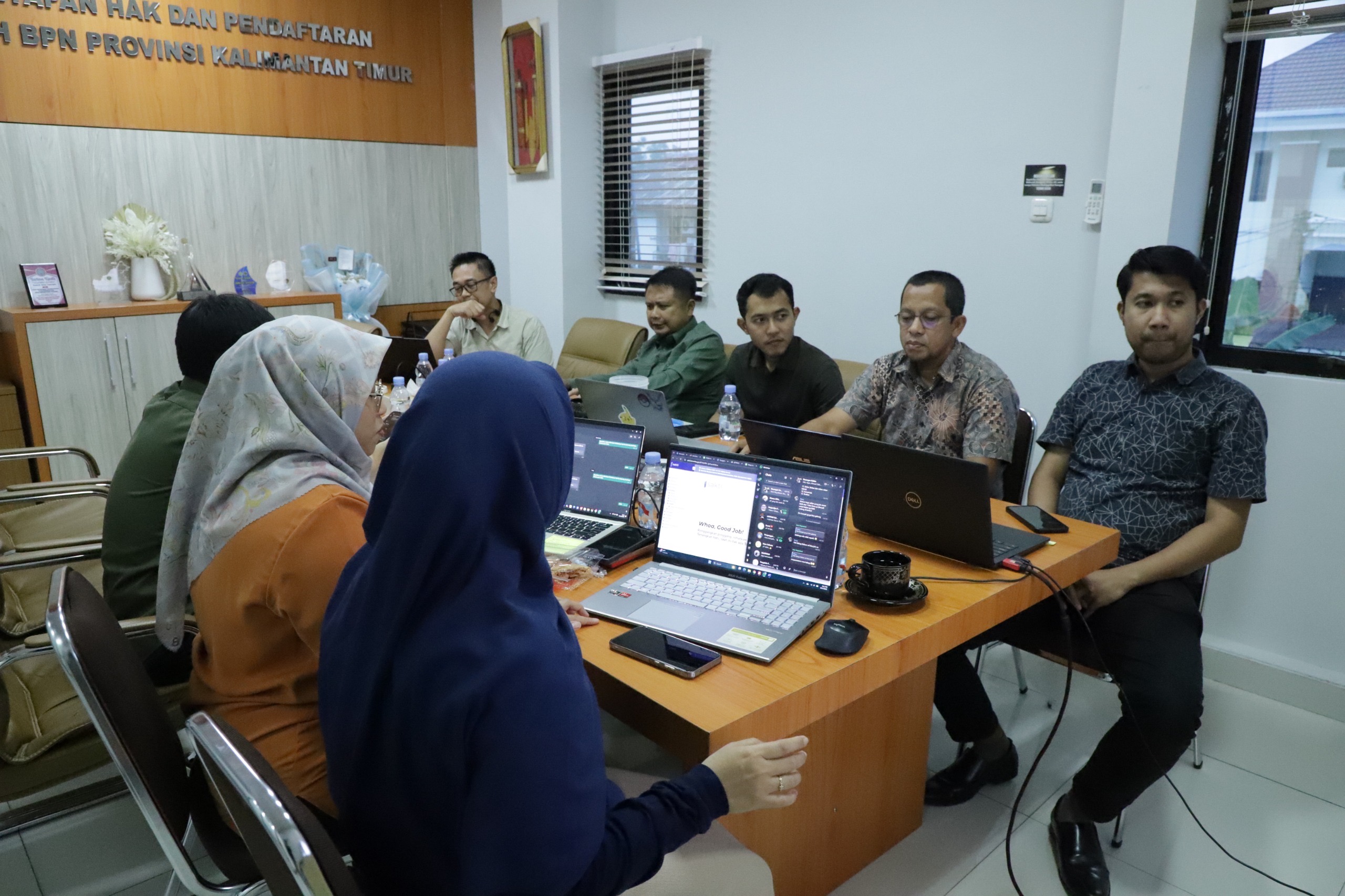 KaltimKita.com, Samarinda - Kantor Wilayah BPN Provinsi Kalimantan Timur mengikuti rapat penyelesaian tunggakan pelayanan dan penyajian Pendapatan Diterima Dimuka (PDDM) yang diselenggarakan oleh Sekretariat Jenderal Kementerian ATR/BPN secara daring melalui video konferensi, Jumat (03/10/2025).