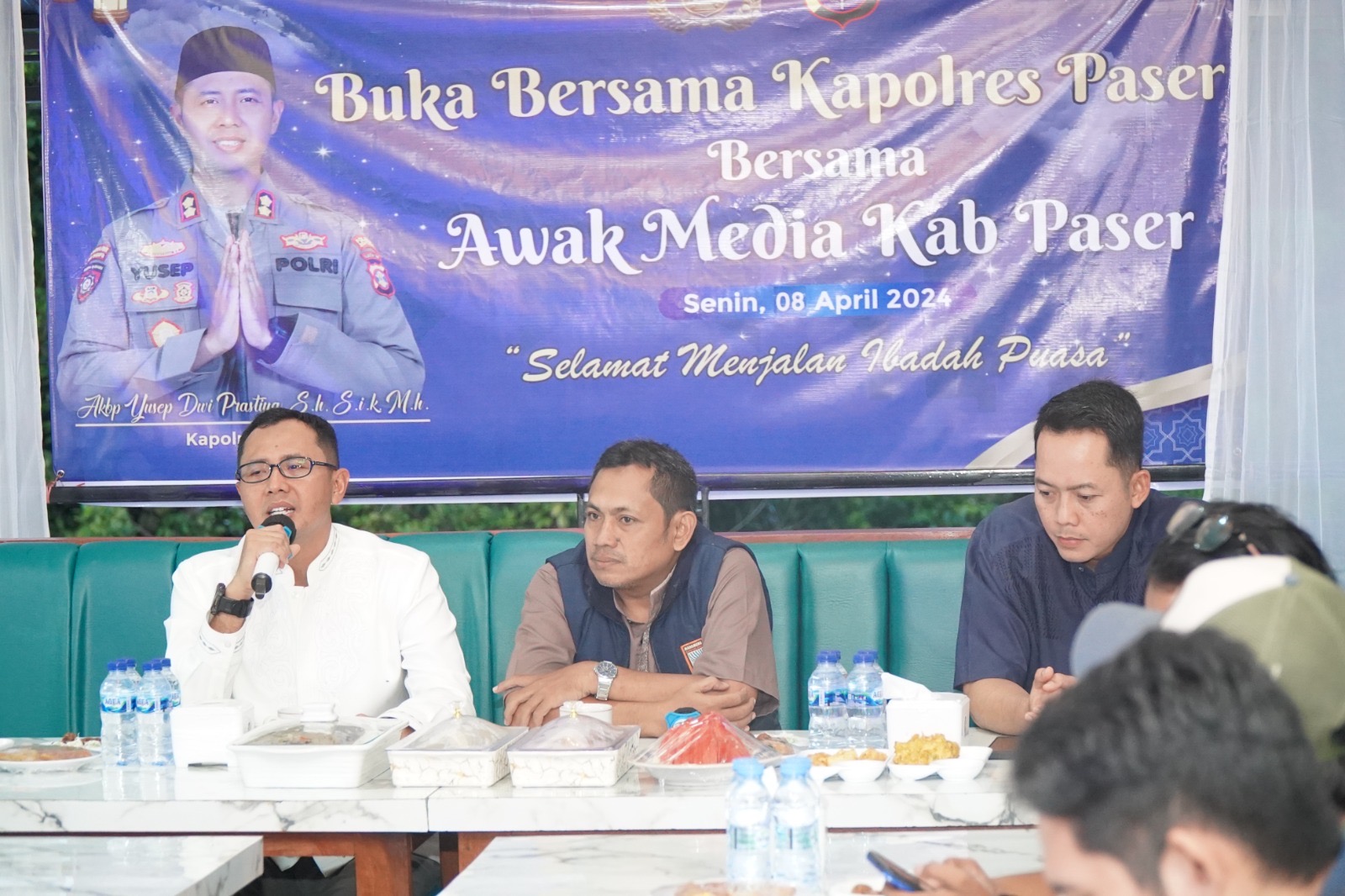 Kapolres Paser, dalam sambutannya, menyampaikan rasa terima kasih atas kehadiran para wartawan dalam acara buka bersama ini. Ia menekankan pentingnya menjalin hubungan yang baik antara kepolisian dan media dalam melaksanakan tugas-tugas jurnalistik terkait penegakan hukum di wilayah hukum Polres Paser.