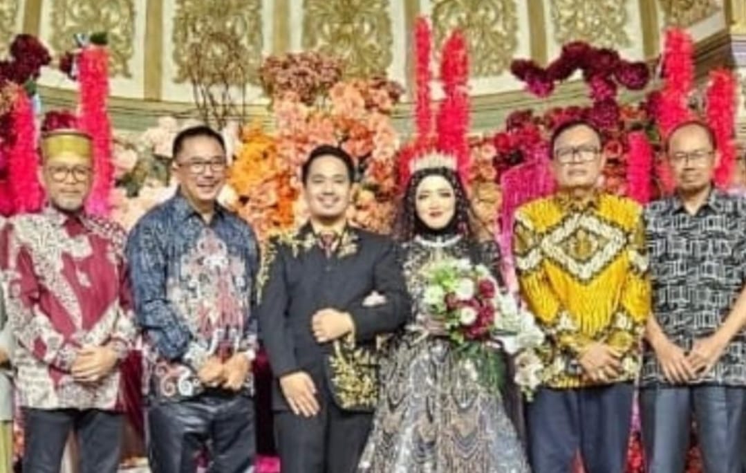 Bersama mempelai, Ketua KKSS Balikpapan Ir H Adam Sinte, anggota DPRD Kaltim Dr H Yusuf Mustafa, dan Zaenal Abidin.