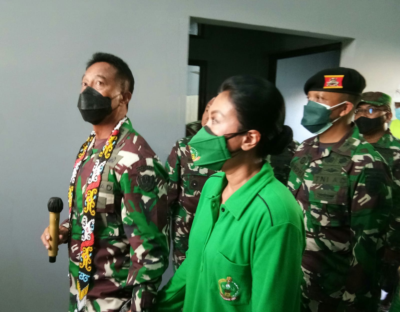 Kaltimkita.com, BALIKPAPAN - Seusai meninjau jalannya Latma Garuda Shield-15/2021 antara TNI AD dan US ARMY di Pusat Latihan Tempur (Puslatpur) Kodam VI Mulawarman di Amborawang, Kasad Jenderal TNI Andika Perkasa bersama istri dan rombongan menyempatkan waktu sekaligus meninjau langsung proyek Rumah Dinas (Rumdin) TNI AD Yonkav 13/ Satya Lembuswana yang berada di Jl. Soekarno-Hatta KM. 28 Samboja, Kutai Kartanegara pada Kamis sore (12/08/2021).