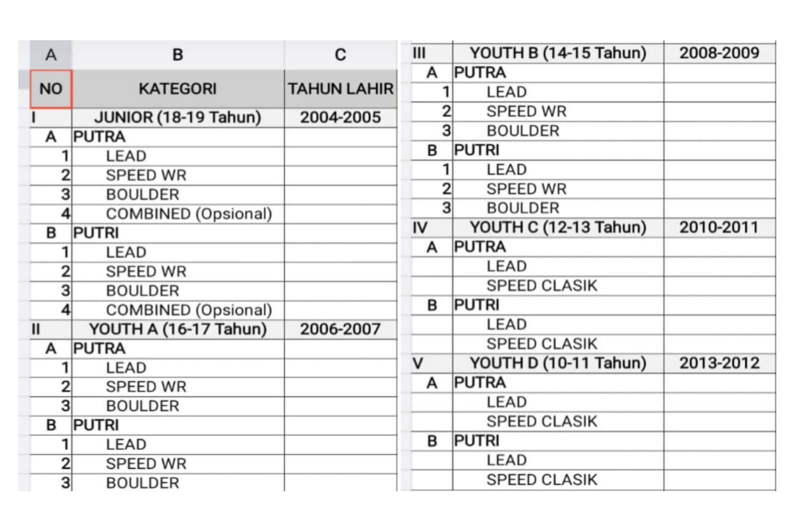 Kejurprov Panjat Tebing Kelompok Umur Kaltim 2023