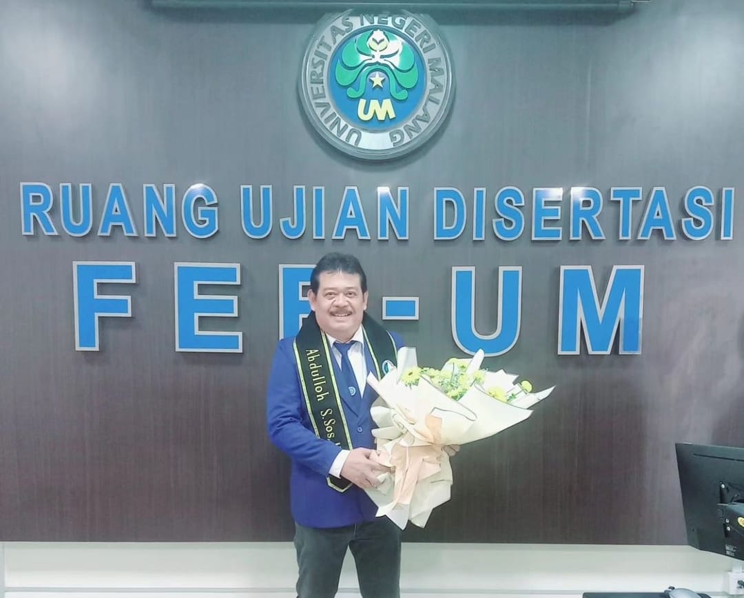 Hari ini, Jumat (15/3/2024), Abdulloh telah berhasil menyandang gelar Magister Ekonomi (ME) di Universitas Negeri Malang (UM).