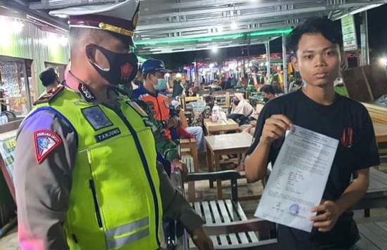 Efektif sambang langsung ke pusat keramaian personil, Satlantas Polres Kutim ingatkan prokes, penerapan PPKM level 4 serta 5 M.