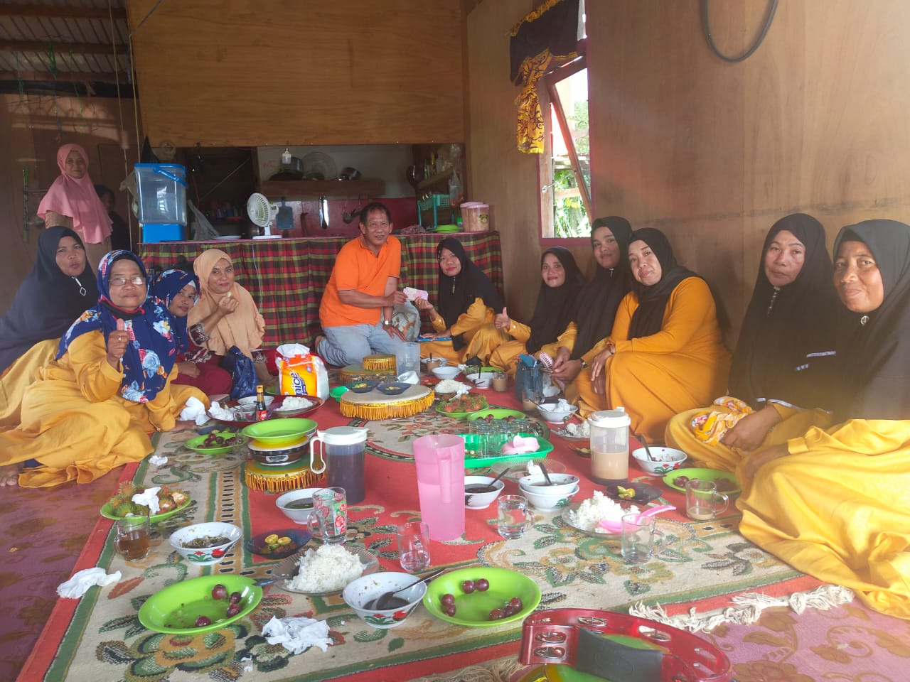 Di tengah ladang sawah majelis taklim istri tercinta Kidang lantunkan yasinan dan pujian Ilahi melalui rebana semoga barokah hasil panennya