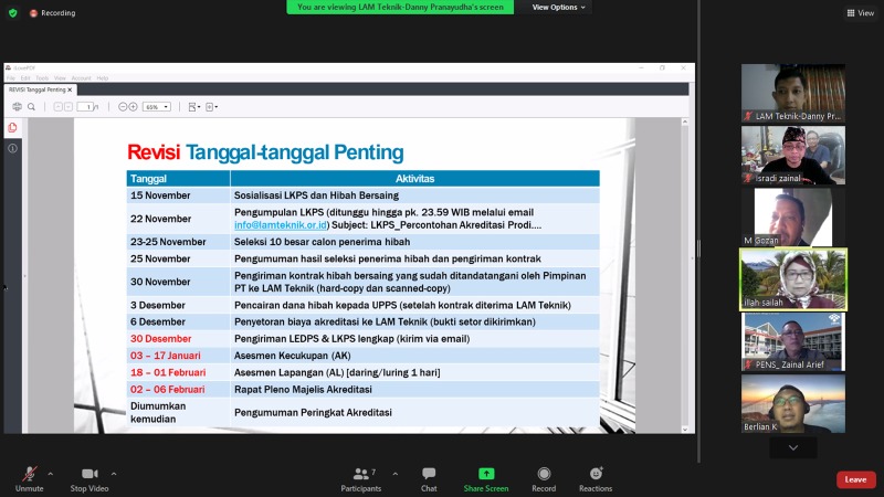 Rapat MA Lamtek dilaksanakan via zoom, Sabtu (25/12/2021) dipimpin oleh ketua MA Lamtek Illah Sailah didampingi sekretaris MA Lamtek Isradi zainal dan dihadiri anggota Lamtek Prof Misri, Prof Suryo, Dr. Zainal, dan lain-lain.