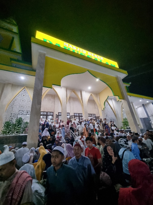 Rabu (22/3/2023) malam ba’da Isa, pengurus Masjid Besar Darussalam pun lang dipadati jemaah untuk mengikuti solat tarawih.