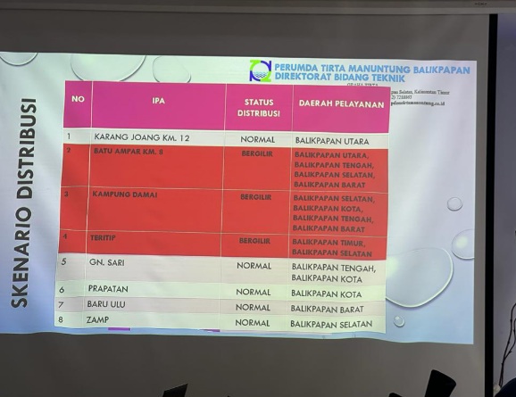 ”Mulai tanggal 9 Oktober sampai 20 Oktober. Itu ada untuk IPA Kampung Damai, IPA Kilometer 8 Karang Joang dan IPA Teritip. Ada tiga yang tidak normal jadi kami lakukan penggiliran, ” ungkapnya.