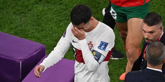 Bintang Portugal Cristiano Ronaldo untuk pertama kali menangis menuju ruang ganti karena tidak percaya bahwa segala kehebatannya ternyata tak mampu menumbangkan Maroko dan bahkan membuat dia dan teman-temannya harus angkat koper meninggalkan Qatar, yang benar-benar penuh drama.