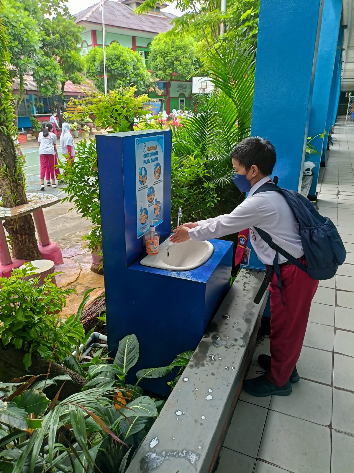 Pihak sekolah sendiri sangat antusias dan memberikan banyak bantuan demi kelancaran kegiatan ini dengan memberikan informasi yang akurat terkait lokasi penempatan hand washer, pemberian fasilitas bekerja dan ikut serta dalam proses instalasi.
