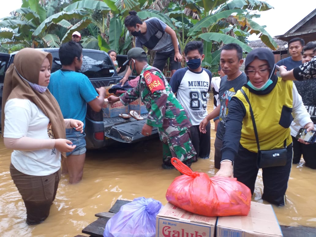 "Dengan memaksimalkan anggota Babinsa dilapangan, anggota TNI dan relawan berjibaku dengan air banjir untuk mengantar logistik."ucapnya.