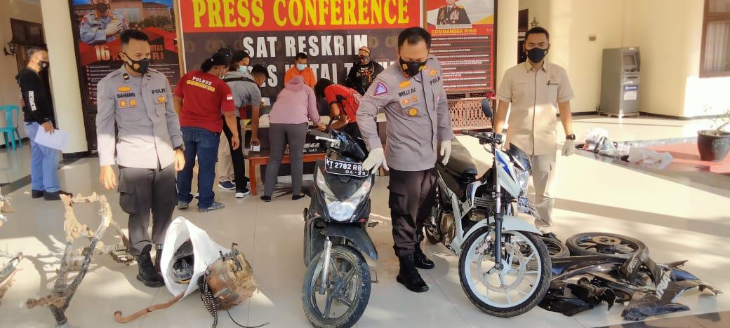 Ipda Danang dengan jabatan barunya (kiri) bersama Kapolres Kutim AKBP Welly (tengah) dan Kasar Reskrim AKP Rauf pada gelaran konferensi pers.