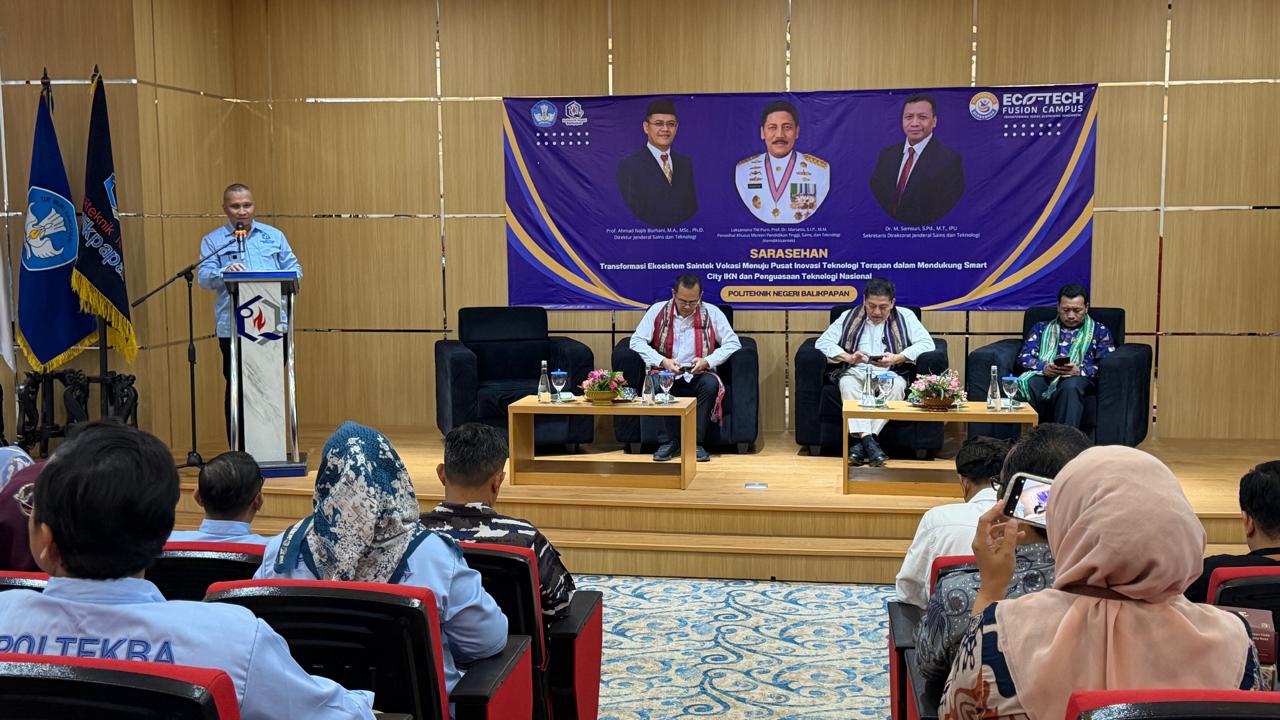 KaltimKita.com, BALIKPAPAN – Politeknik Negeri Balikpapan (Poltekba) terus mematangkan langkah transformasi kelembagaan menuju perguruan tinggi berbasis universitas terapan. Upaya tersebut mengemuka dalam Sarasehan bertema Transformasi Ekosistem Saintek Vokasi Menuju Pusat Inovasi Teknologi Terapan dalam Mendukung Smart City IKN dan Penyangga Teknologi Nasional yang digelar di Poltekba, Kamis (29/1/2026).