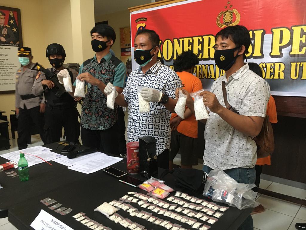 Anton Saman menegaskan, tersangka Mr dijerat pasal 114 ayat 2 Jo pasal 112 ayat 1 UU Nomor 35 Tahun 2009 tentang Narkotika dan UU Nomor 36 Tahun 2009 tentang Kesehatan dengan ancaman 15 tahun penjara.