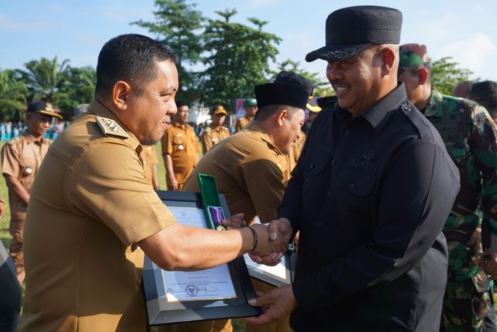 Kaltimkita.com, KUTAI KARTANEGARA - Bupati Kukar Edi Damansyah serahkan penghargaan kepada 30 desa dengan status Desa Mandiri tahun 2023 dan penyerahan penghargaan kepada 20 desa dengan transaksi non tunai tinggi tahun 2023 pada Apel Pencanangan BBGRM ke-XXI tingkat kabupaten, pada Sabtu (11/5/2024) di lapangan Bola Desa Kembang Janggut Kecamatan Kembang Janggut.