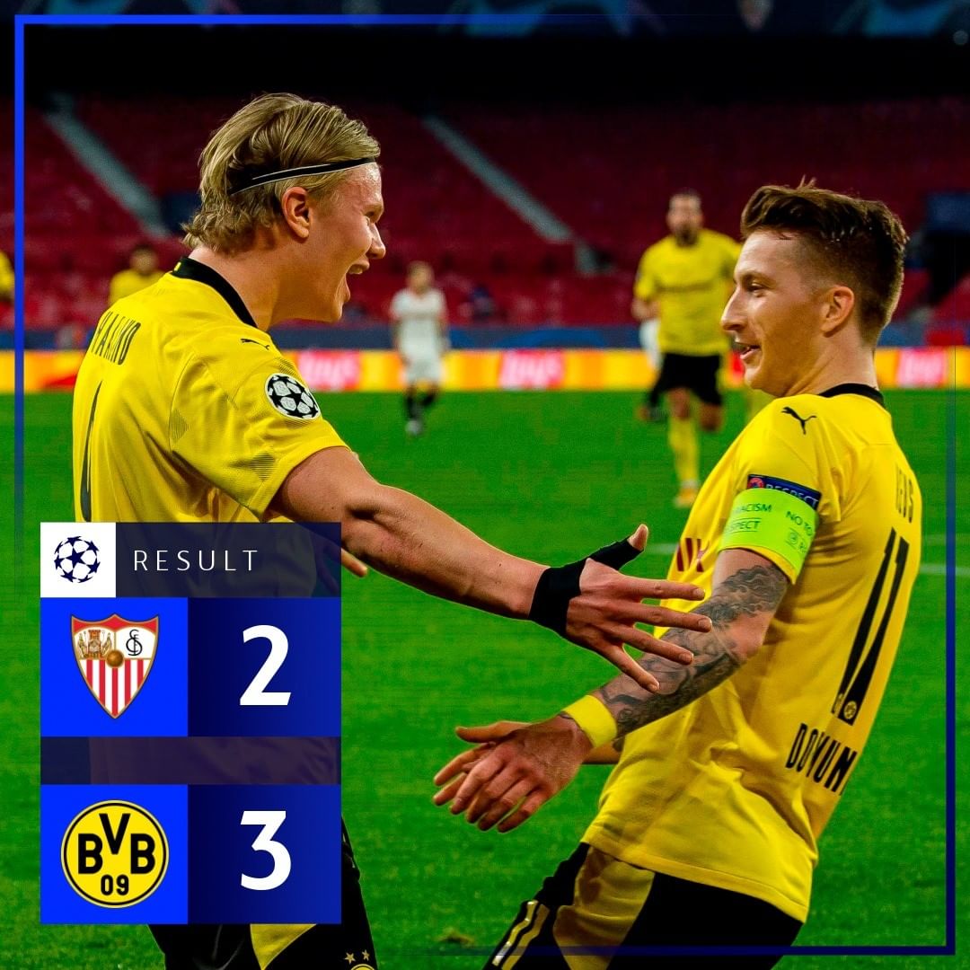 Sementara di laga lainnya Borussia Dortmund pulang dengan kemenangan dari lawatan ke markas Sevilla di leg pertama babak 16 besar Liga Champions. Die Borussen -julukan Borussia Dortmund menang dengan skor 3-2. Duel Sevilla vs Dortmund di leg pertama babak 16 besar Liga Champions digelar di Estadio Ramon Sanchez Pizjuan, Kamis (18/2/2021) dini hari WIB.
