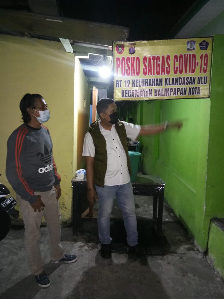 Diketuai oleh Lurah Klandasan Ulu Balikpapan Kota, Siswanto bersama jajarannya serta babinsa dan bhabinkamtibmas mengunjungi beberapa RT yang sedang berjaga di posko satgas mereka.