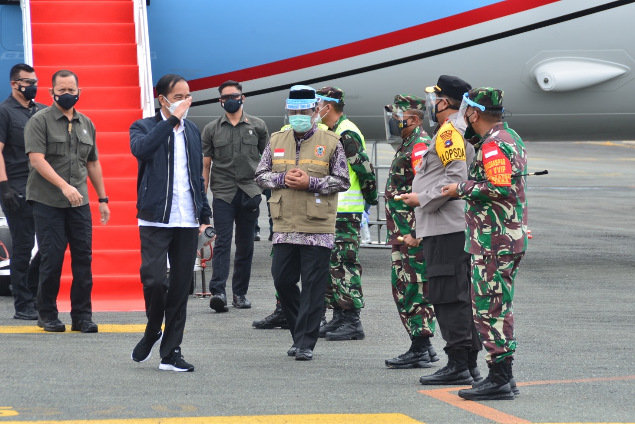 Saat meninjau, Presiden didampingi Menteri PU dan Perumahan Rakyat, Basuki Hadimuljono, Kepala BNPB, Doni Monardo, Gubernur Kalsel, H Sabhirin Noor, Bupati Banjar KH Khalilurrahman, Pangdam Vl/Mulawarman, Kapolda Kalsel, Danrem 101/Antasari serta pejabat lainnya.