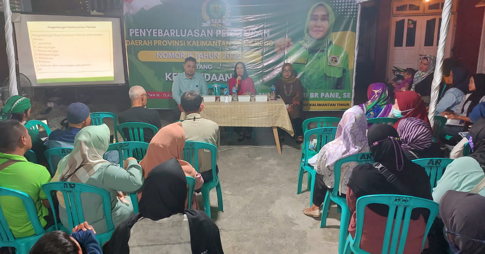 Kaltimkita.com, BALIKPAPAN - Anggota DPRD Provinsi Kalimantan Timur, Dapil Balikpapan, Mimi Meriami BR Pane, SE dari fraksi PPP, kembali menggelar Penyebarluasan Peraturan Daerah (Perda) Provinsi Kalimantan Timur ke-1 nomor 8 tahun 2022 tentang Kepemudaan pada Ahad (13/8/2023).