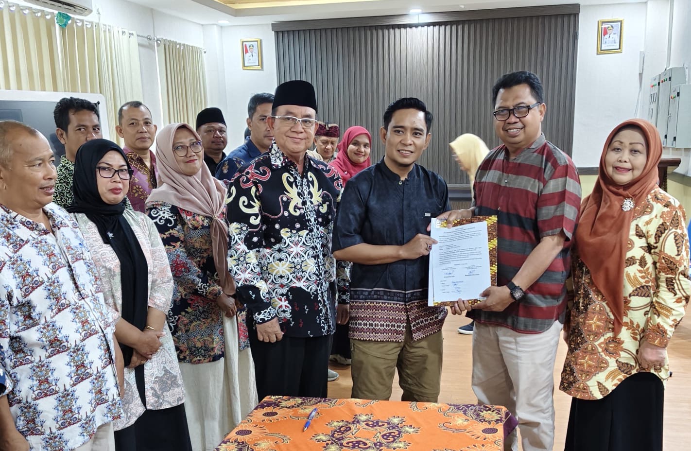SAH: Foto bersama usai penandatangan berita acara pelantikan dilakukan Muhammad Hatta didampingi kepala SMKN 1, Ketua Dewan Pertimbangan dan pengurus.