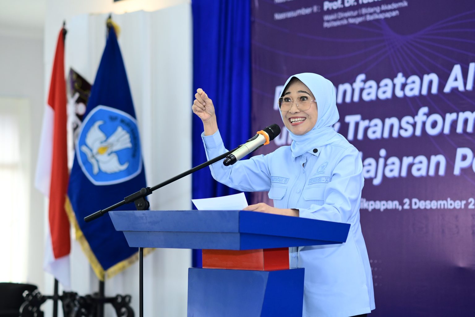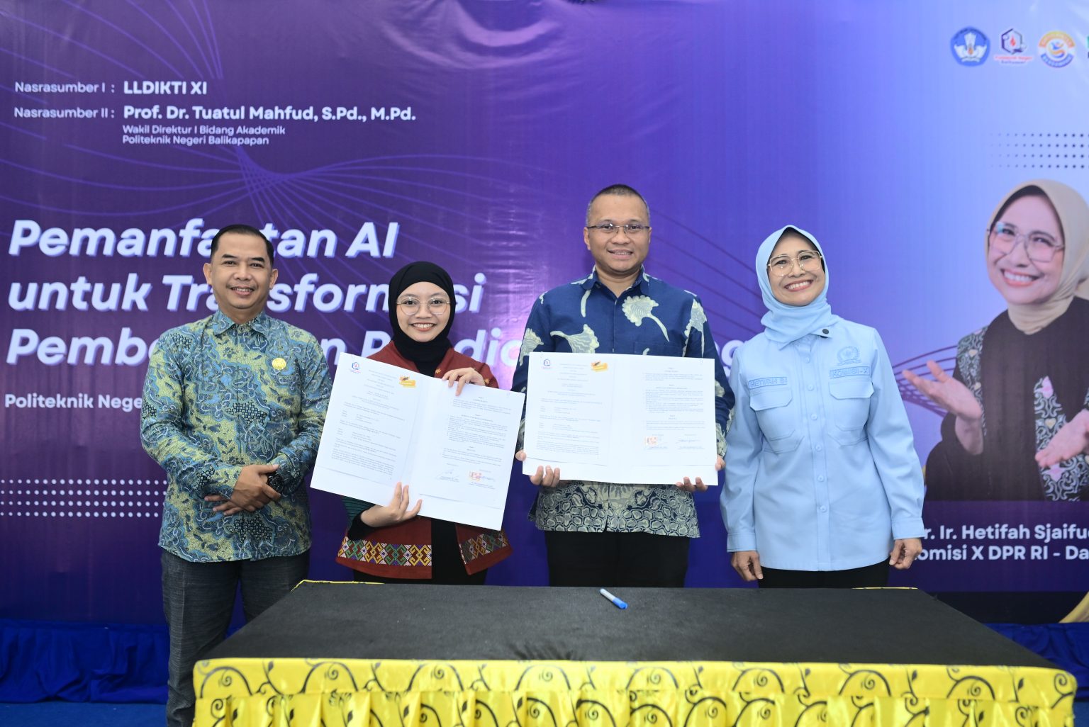 Acara ini menghadirkan keynote speaker Wakil Ketua Komisi X DPR RI, Dr. Hetifah Sjaifudian, MPP, serta pemateri dari LLDIKTI Wilayah XI dan pakar pendidikan nasional sekaligus Wakil Direktur I Bidang Akademik dan Penjaminan Mutu Poltekba, Prof. Dr. Tuatul Mahfud, M.Pd.