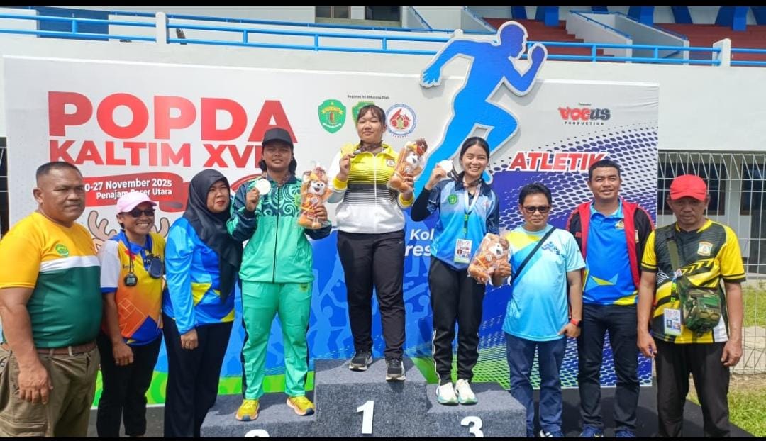 KaltimKita.com, PPU - Cabang olahraga atletik menjadi penyumbang medali emas pertama bagi kontingen Balikpapan pada Pekan Olahraga Pelajar Daerah (Popda) XVII Kalimantan Timur 2025 di Penajam Paser Utara. Emas perdana itu lahir dari nomor lempar lembing melalui atlet Nadine Sifa Rulli yang mencatatkan lemparan sejauh 26,45 meter yang berlangsung di Lintasan Atletik Stadion Panglima Sentik, Senin (17/11/2025).