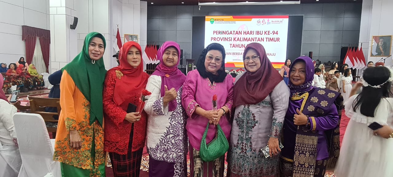 Sejumlah tokoh wanita daerah hadir menyambut Hari Ibu tahun ini, yang bertema “Perempuan Berdaya, Indonesia Maju.” Di antaranya Ketua BKOW drg Astuty Tommy, Prof Komariah Kuncoro, Ibu Nilakandi, dan Prof Suwinnah Alwi lewat zoom serta istri Ketua DPRD Kaltim, Hj Nurfadiah Hasanuddin Mas’ud.