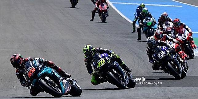 kaltimkita.com, Jerez - Yamaha sapu bersih MotoGP Andalusia 2020. Pebalap Petronas Yamaha Fabio Quartararo memenangi balapan disusul duo Monster Yamaha, Maverick Vinales dan Valentino Rossi.