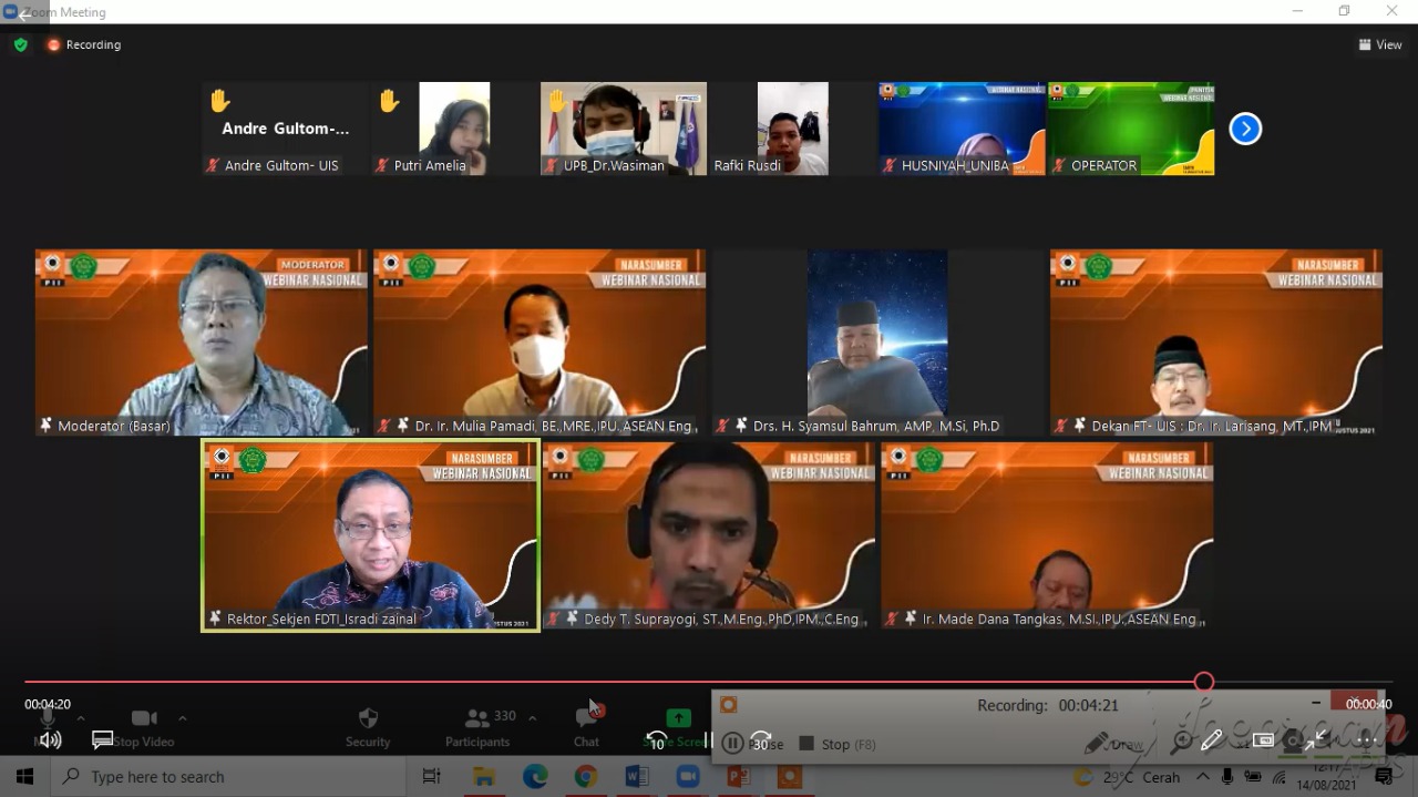 KaltimKita.com, BALIKPAPAN - Rektor Universitas Balikpapan Dr Isradi Zainal menjadi pemateri dalam webinar nasional yang dilaksanakan Fakultas Teknik Universitas Ibnu Sina bekerja sama dengan Pengurus Wilayah Persatuan Insinyur Indonesia PW PII Kepri.