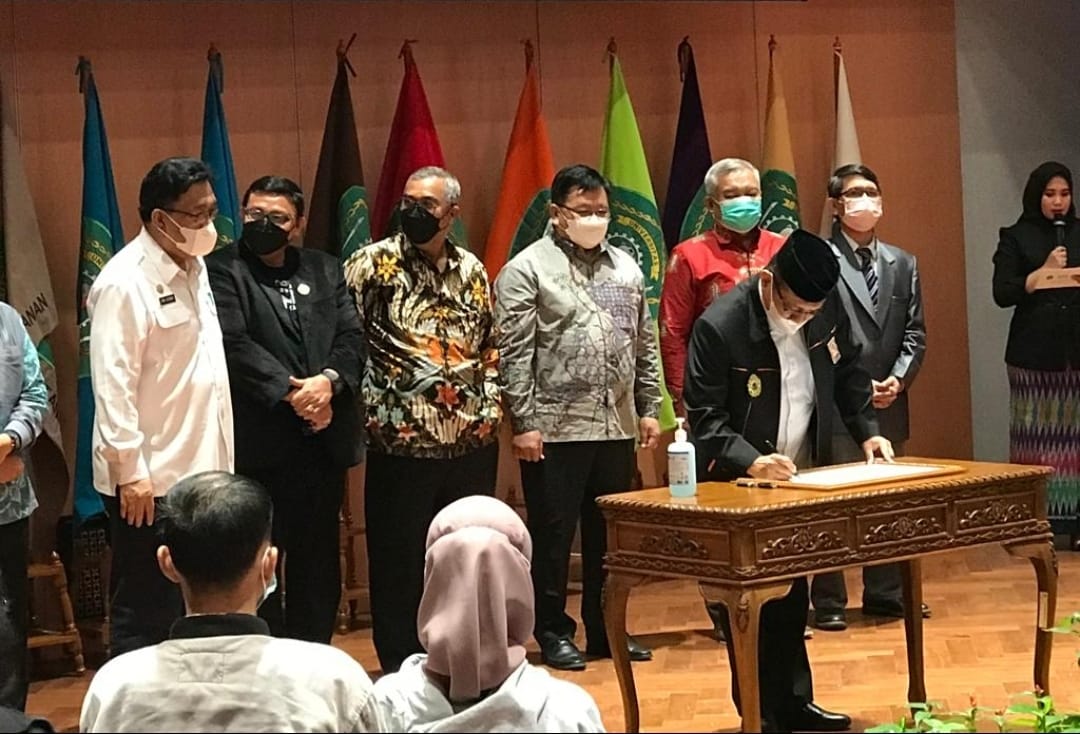 KaltimKita.com - Rektor Unmul Prof Masjaya dan Rektor Uniba Dr. IZ didampingi sejumlah Rektor Pendiri KUC seperti Universitas Pontianak, Universitas Lambang Mangkurat, Universitas Borneo Tarakan, Universitas Tanjung Pura, dan Politeknik Negeri Pontinak. menjadi Pembicara terkaitt IKN di sela sela Rapat Kerja Kalimantan University Consortium (KUC) yang dilaksanakan di Universitas Mulawarmam (Unmul)(19/1/2022)
