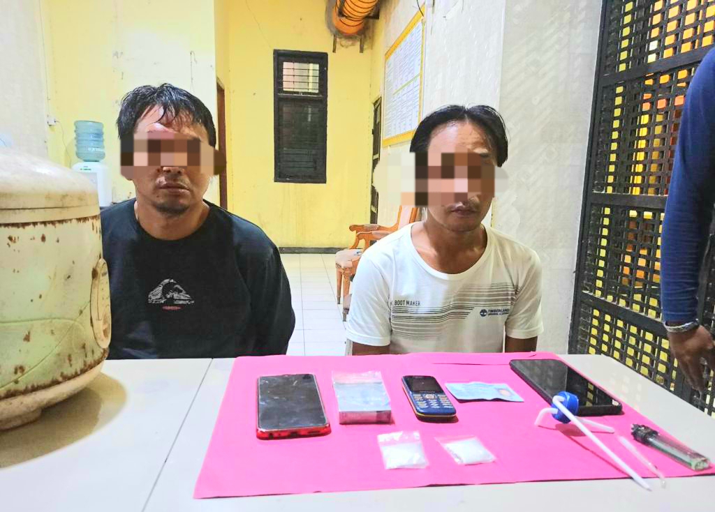 ”Kedua tsk narkoba ini bekuk saat berada dalam rumahnya kawasan Kampung Kajang Desa Singa Geweh Kecamatan Sangatta Selatan,” tegas Kasat Resnarkoba Polres Kutim.
