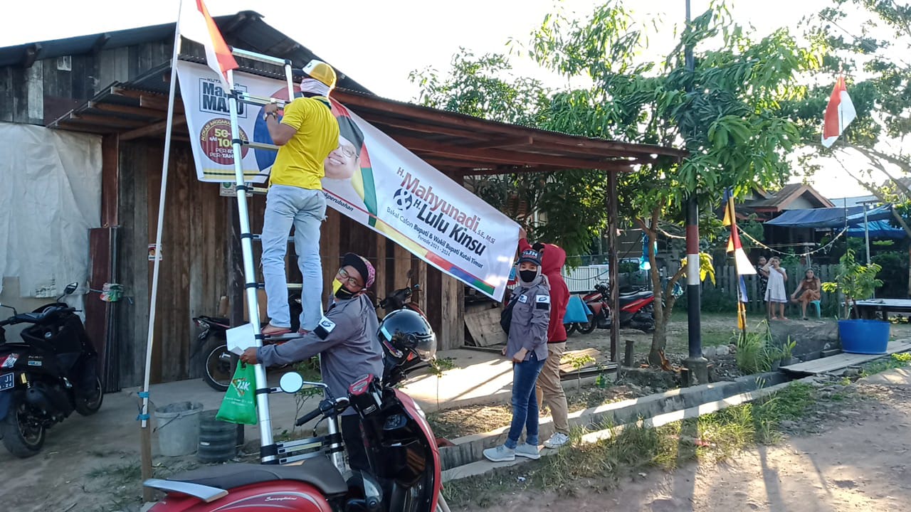 Tim SABER TJK Production MAKIN, Selasa (25/8/2020) turun langsung salurkan ratusan spanduk, stiker, brosur visi-misi MAKIN, tak sedikit rombongan SABER kebanjiran orderan baliho MAKIN dalam mengusung pemenangan Mahyunadi-Kinsu.
