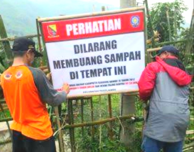 Ilustrasi pemasangan plang imbauan larangan membuang sampah